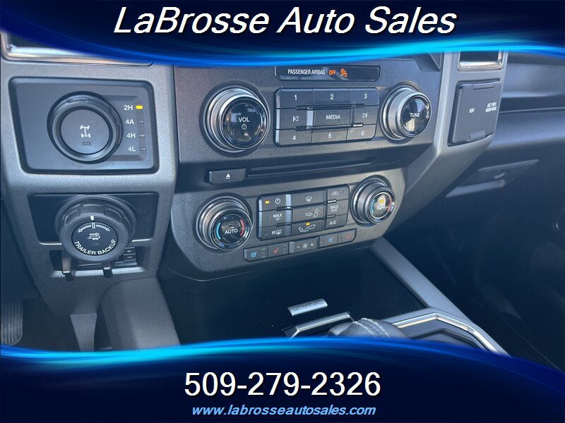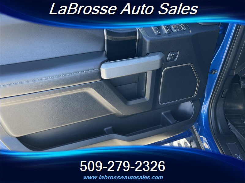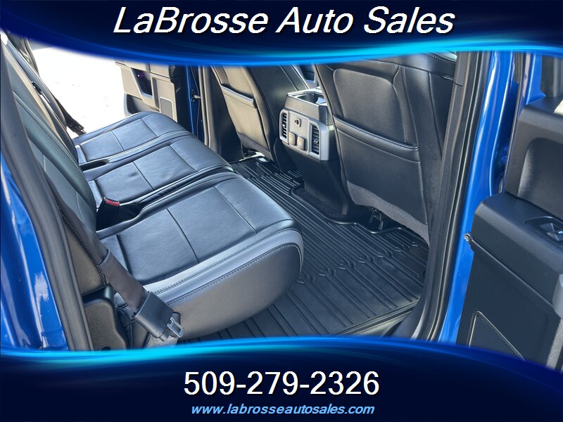 - Equipment Group 802AIncludes vehicle with standard equipment, 10-way power driver and passenger seats, passenger seat power lumbar adjustment, heated and cooled front seats, front seat memory settings, leather seating surfaces, power-adjustable pedals with memory, power tilt and telescoping steering column with memory settings, ambient lighting, dual-zone electronic automatic temperature control (DEATC), power sliding rear window with privacy tint and defrost, power folding and power glass exterior mirrors with heat, turn signals, drivers side auto-dimming feature, LED spotlights with high-intensity LED security approach lamps, body-color skull caps, and memory settings, LED box lighting, Intelligent Access, push-button start, remote start system, remote tailgate release, universal garage door opener, Advanced Security Pack with SecuriLock Passive Anti-Theft System (PATS) and inclination and intrusion sensors, Blind Spot Information System (BLIS), Cross-Traffic Alert, and trailer tow monitoring (BLIS sensor in taillamp), 360 degree camera, Pro Trailer backup assist, inflatable rear safety belts, 4.10 front axle with torsen differential, integrated trailer brake controller, Sony single-CD audio system, HD radio, SiriusXM Radio, voice-activated navigation system with SiriusXM Traffic and Travel Link, SYNC Connect, and SYNC 3 enhanced voice recognition communications and entertainment system with 911 Assist, AppLink, Apple CarPlay, Android Auto, 8 inch LCD touchscreen in center stack, 4.2 inch productivity screen in instrument cluster, two smart charging USB ports, compass and clock display. SiriusXM Traffic and Travel Link include a 5 year prepaid subscription in the 48 contiguous United States and D.C.