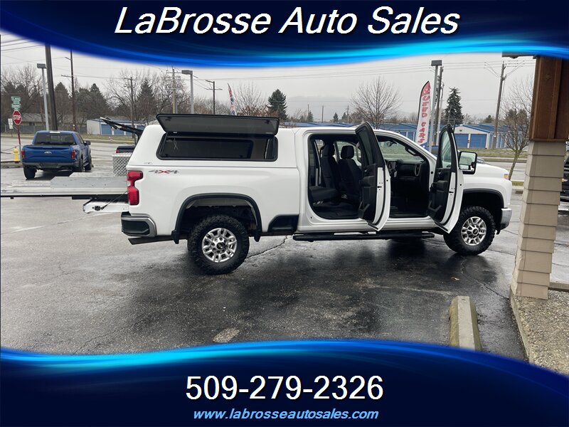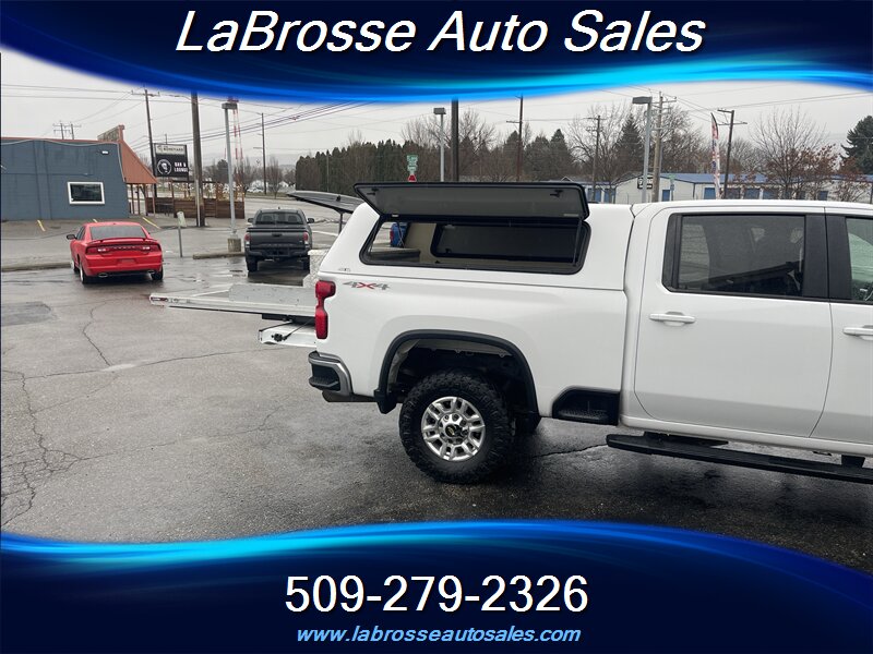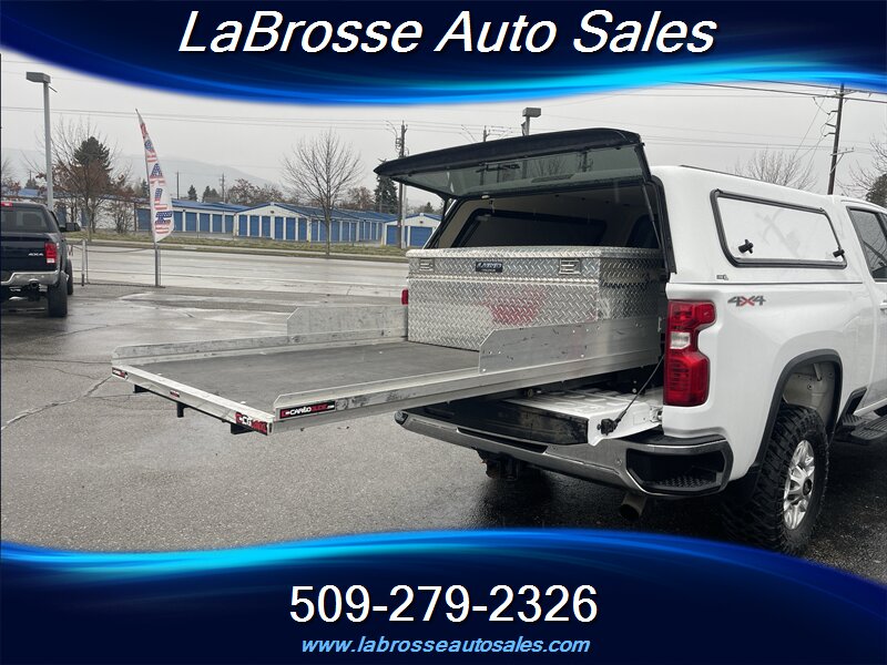 2020 Chevrolet 2500HD crew cab LT with work canopy, toolbox and bed slide.